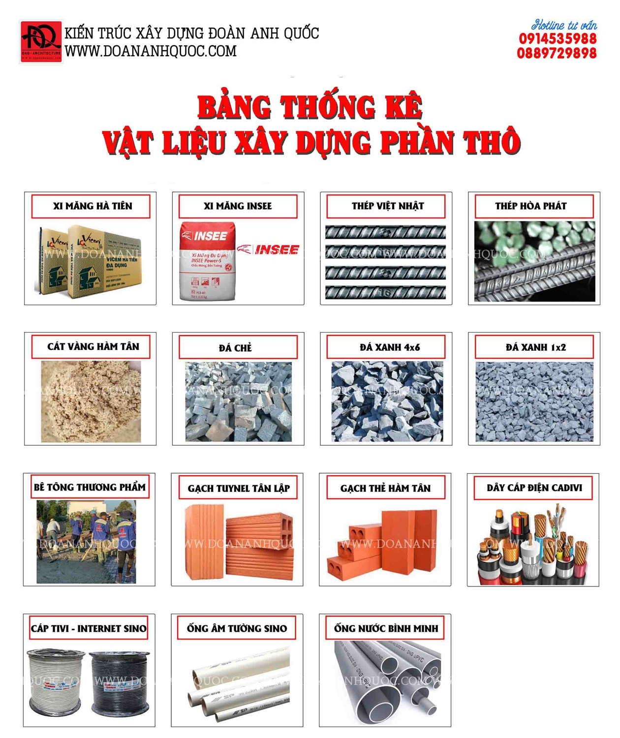 Các vật tư khác không có trong bảng phân tích này Chủ đầu tư vui lòng liên hệ Công ty để được tư vấn và báo giá chi tiết.